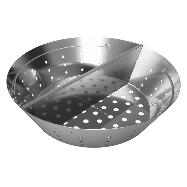 De 2XL en XL vuurkommen bevatten een scheidingswand voor het verbranden van houtskool met 2 zones