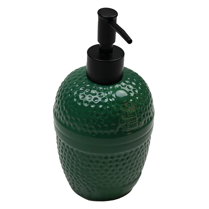 Wat is een keuken zonder zeep? Oftewel jouw (buiten)keuken kan niet zonder deze Big Green Egg zeepdispenser. De mini-EGG is een echte eyecatcher, maar dan met een handige functie. Voor buitenkeukens, maar ook voor in huis. Dankzij het pompsysteem pomp je met je schone hand (of zelfs je pols) de vloeibare zeep heel eenvoudig omhoog, zodat je mooie dispenser lekker schoon blijft. En heb je een favoriete saus? Ook daarmee kun je deze dispenser vullen.