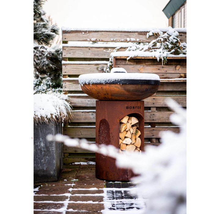 Hoewel de BonBiza gemaakt van (corten)staal en dus tegen een stootje kan, kan het heel prettig zijn om de BonBiza na gebruik met een deksel af te sluiten. Het vuur zal, door gebrek aan zuurstof, immers sneller doven. Bovendien krijgt regenwater geen kans.