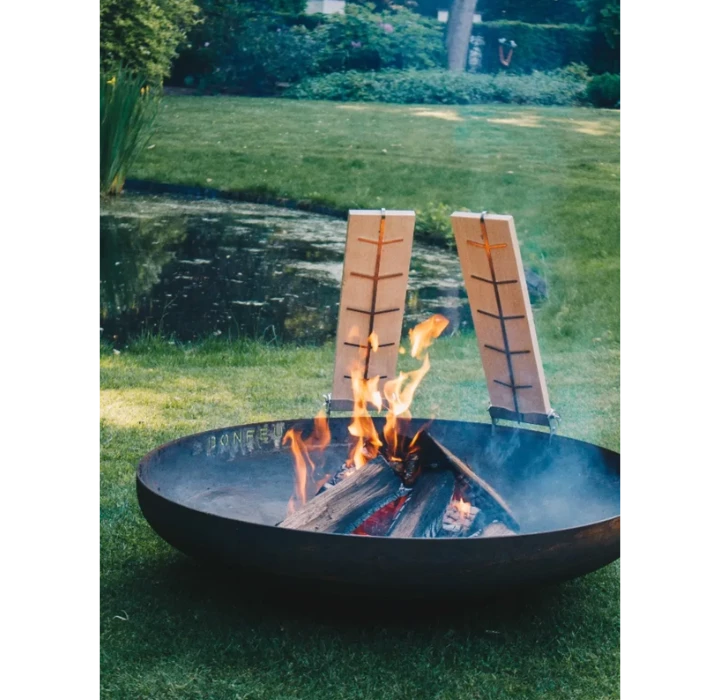 Met de BonFeu Finse Rookplank rook je eenvoudig vis boven de tuinhaard of vuurschaal. Deze houten plank kan met klemmen aan de rand worden bevestigd en laat je genieten van een heerlijk houtgerookt stukje vis!