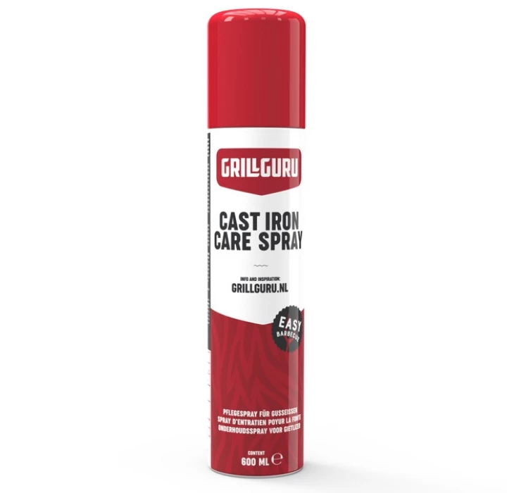 Wil je jaren lang plezier beleven aan je gietijzeren pannen en grills? De Cast Iron Care Spray van Grill Guru verzorgt al je gietijzeren accessoires. De olie zorgt voor een extra beschermlaagje om roest te voorkomen. Spray na gebruik en schoonmaak op je accessoire.