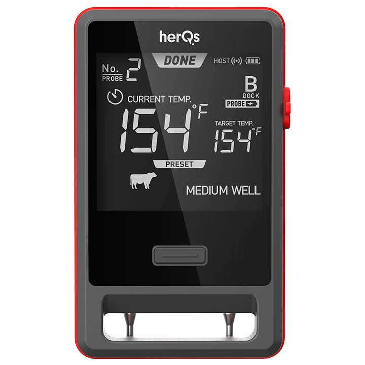 Met de herQs Pin Pro haal je jezelf een enorm makkelijk te gebruiken vlees thermometer in huis die volledig draadloos is. De herQs Pin Probe is te verbinden met de herQs App welke jou alle inzichten geeft die je wilt hebben wanneer jij je gerecht aan het bereiden bent. Uiteraard zijn er vooraf ingestelde waarden in de app waardoor je kunt aangeven welk stuk vlees je aan het bereiden bent en hoe jij de garing wilt hebben. De herQs Pin Pro wordt standaard geleverd met 2 draadloze probes welke opgeborgen worden aan de achterkant. Hier worden ze tevens ook opgeladen. Neem de draadloze probes na gebruik met een vochtige doek af en plaatse ze terug aan de achterkant zodat de probes zichzelf opladen en klaar zijn voor een volgende bereiding.Â
