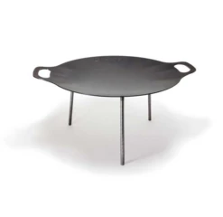Met de drie poten staat de grill en vuurschaal veilig boven het vuur. De vuurschaal wordt in het midden warmer dan aan de buitenrand. Dus je kunt biefstukken en gebakken goederen warm houden terwijl je in het midden de groente bakt. Met het eerste gebruikt wordt de grillplaat verbrand. Zodat na het bakken en braden een platina ontstaat, wat zorgt voor een natuurlijke anti-kleef effect. Eenmaal verbrand wordt de plaat snel heet en kunt u meteen beginnen met grillen.