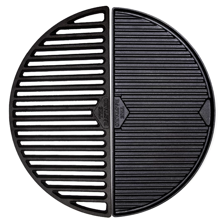 Rooster: Als je echt het beste van het beste wilt van je Bastard dan grill je gerechten op een gietijzeren rooster. Gietijzer geeft een constantere warmte dan RVS en geleidt beter waardoor het bij uitrek geschikt is om mee te grillen. The Bastard halve gietijzeren rooster Large is gemaakt van het hoogste kwaliteit gietijzer.Â